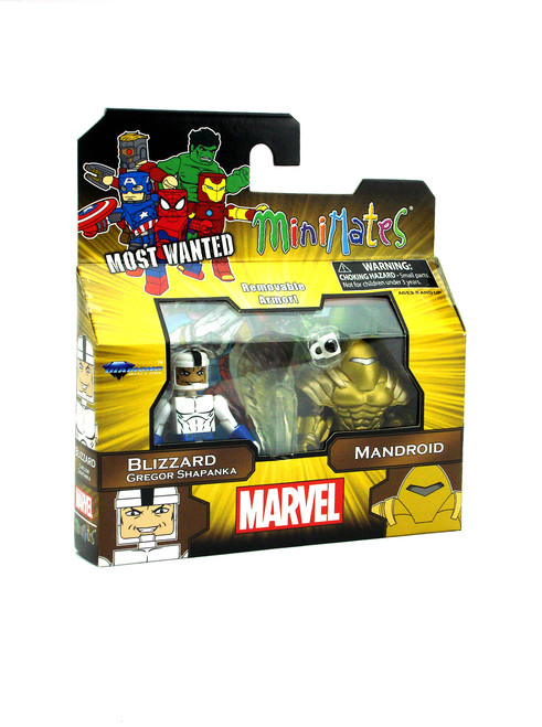 Blizzard Gregor Shapanka: In pursuit of immortality, scientist Gregor Shapanka developed a suit that could generate extreme cold. He committed crimes as Jack Frost, and he later fought Iron Man as the Blizzard, while working for Justin Hammer. The Mandroid armor was developed as heavy support for SHIELD ground troops. Tony Stark helped design the original suit, but subsequent models have seen combat against the Avengers, X-Men and the Incredible Hulk. Produced by Art Asylum and Diamond Select in 2016. Featuring Gregor Shapanka as Blizzard & Mandroid from the Series 69 line of Marvel Minimates.