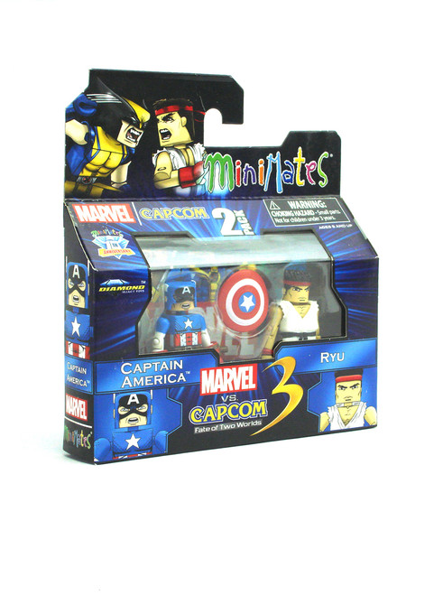 Produced by Art Asylum and Diamond Select in 2012. Featuring Captain America and Ryu from the Marvel Vs. Capcom Series 3 line of Marvel Minimates. A Diamond Select Release! Art Asylum Designs & Sculpts!