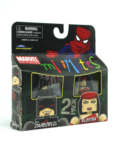 Produced by Art Asylum and Diamond Select in 2011. Featuring Evil Daredevil & Elektra from the Series 38 line of Marvel Minimates. Become the Man without Fears Evil counterpart with this Minimate figure set!