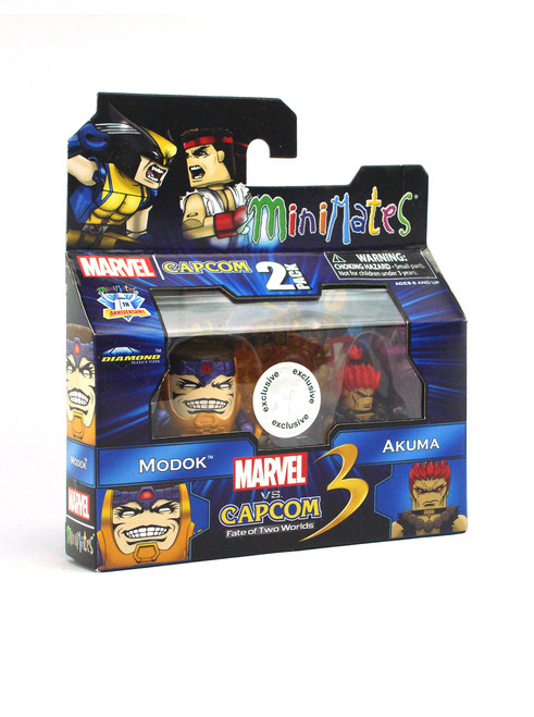 Produced by Art Asylum and Diamond Select in 2012. Featuring MODOK and Akuma from the Marvel Vs. Capcom Series 3 Toys R Us line of Marvel Minimates. A Diamond Select Release! Art Asylum Designs & Sculpts! The third wave of Minimates based on Marvel vs. Capcom 3 picks up where the second wave left off.