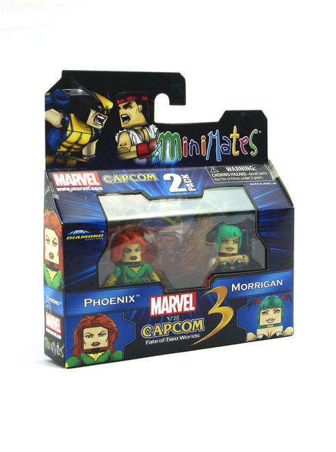 Produced by Art Asylum and Diamond Select in 2012. Featuring Phoenix & Morrigan from the Marvel Vs. Capcom Series 1 line of Marvel Minimates. A Diamond Select Release! Art Asylum Designs & Sculpts! Round Two - Fight!